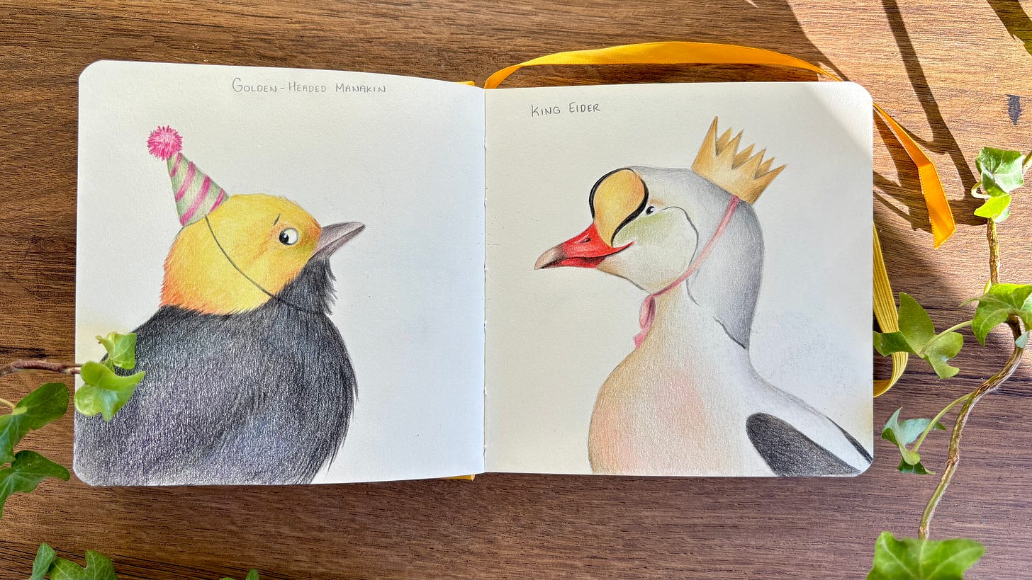 I’m currently taking part in the #birbfest challenge on Instagram. I’ll come back to the subject of insta challenges and whether or not they’re a good thing in a later post, but for now I’m really enjoying drawing little birds in coloured pencils. I’ll also have a lot more to say about coloured pencils in a later post.